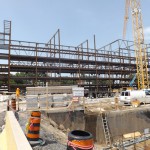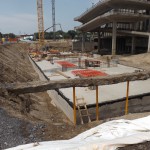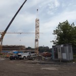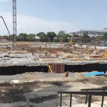 - Temperature 100C in the shade. Today we saw the crane going up for the parking garage below building K to the south and west of the South side stands
